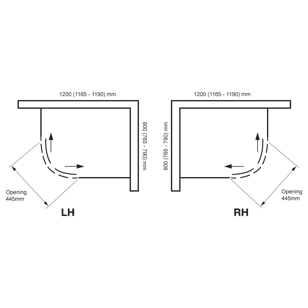 * 1200 x 800mm designer offset quadrant tray LH APTR9-1280Q-L-FR