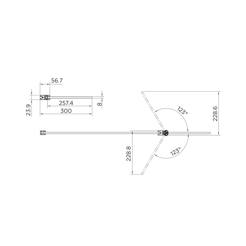 Aquadart Wetroom 10 Hinged Return Panel 300mm Clear/Black Chrome