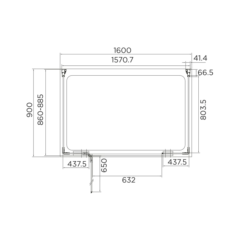 Inline Hinged Door 3 Sided Enclosure 1600x900mm