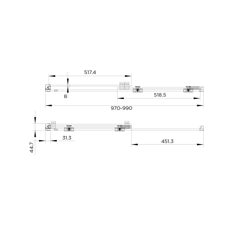 Adjustment 970mm minimum – 990mm maximum