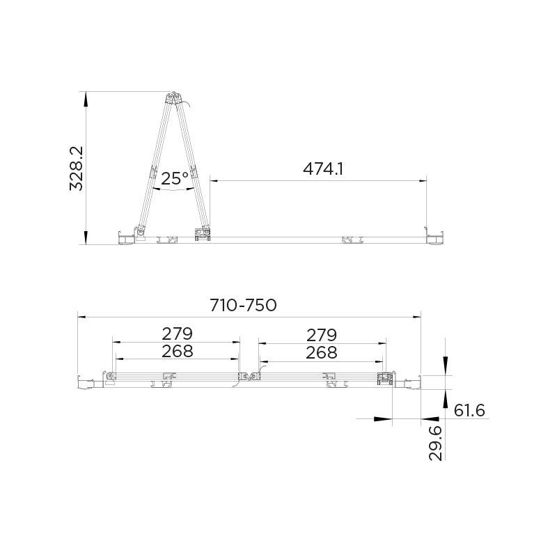Adjustment 710mm minimum – 750mm maximum