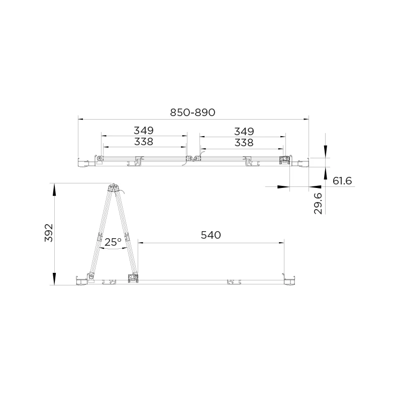 Adjustment 850mm minimum – 890mm maximum