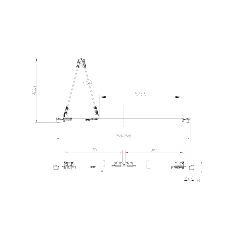 Adjustment 850mm minimum – 890mm maximum