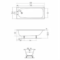 Sandringham 21 bath 170 x 70cm standard gauge steel with chrome plated grips