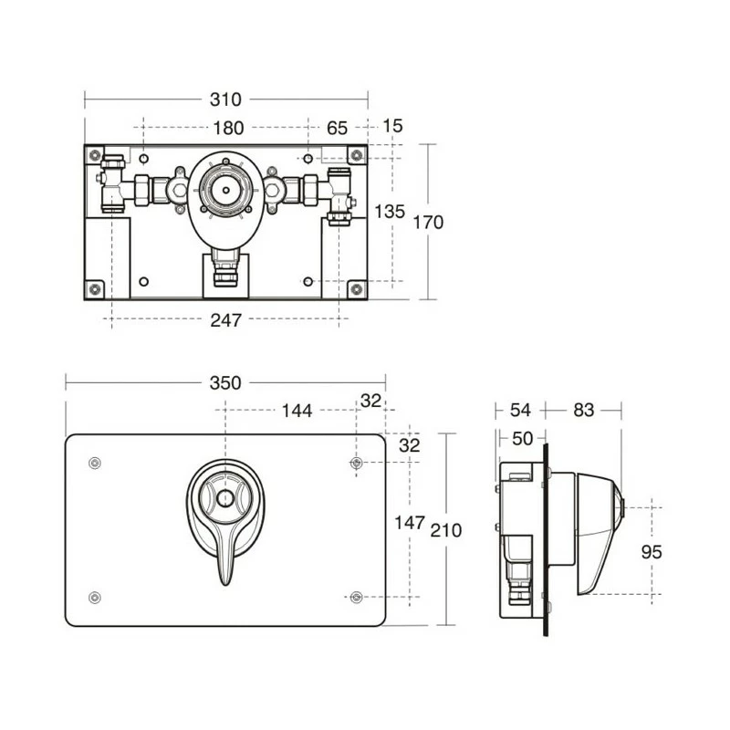 Concentric thermostatic mixing valve with extended lever, mounting box with stainless steel cover plate