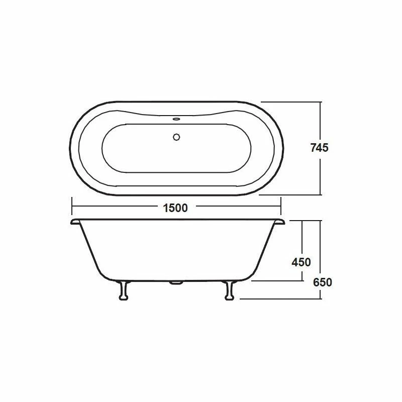 Bayswater Leinster 1500mm Double Ended Freestanding Bath
