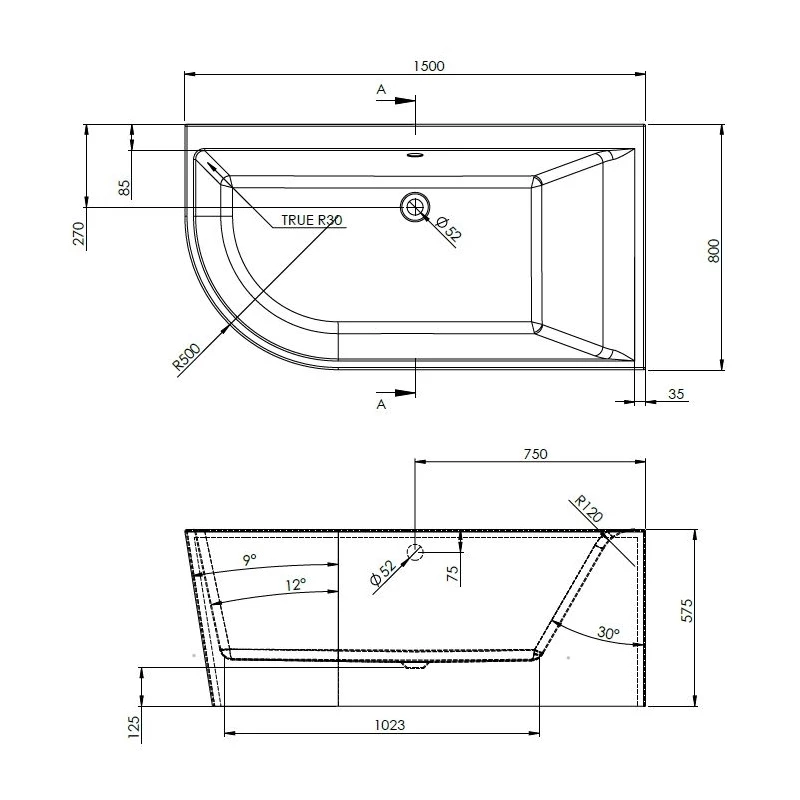 BC Designs Calverton 1500mm x 800mm Freestanding Right Hand Offset Corner Bath