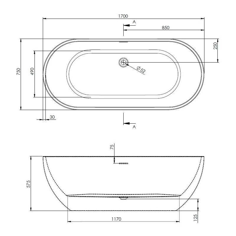 BC Designs Olney 1700mm x 750mm Freestanding Double Ended Bath