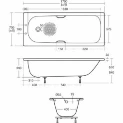 BC Designs SolidBlue 1500mm P Shape Bath Panel