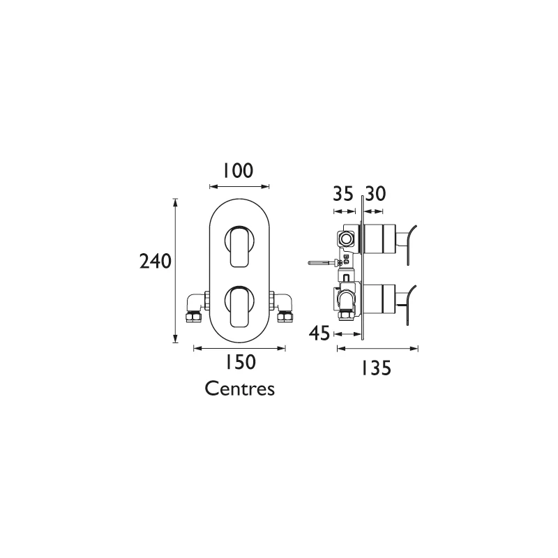 Alp Thermostatic Recessed Dual Control Shower Valve with Integral Two Outlet Diverter