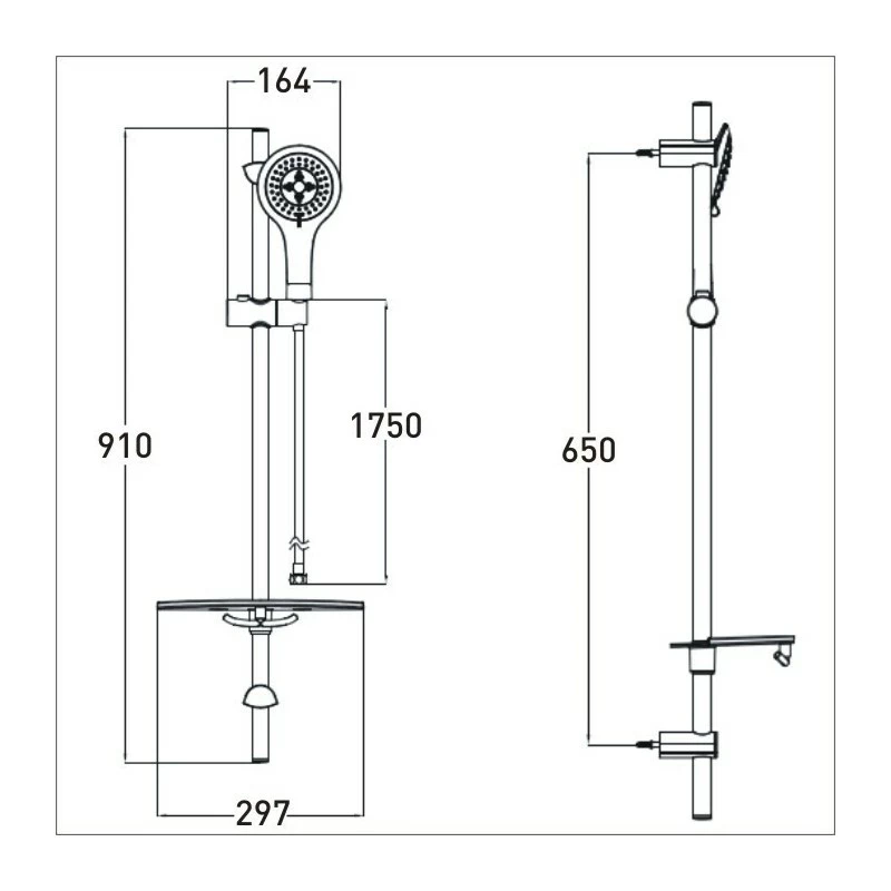 910mm adjustable riser shower kit with 3-function rub clean anti limescale handset and extended 1.75m flexible hose.