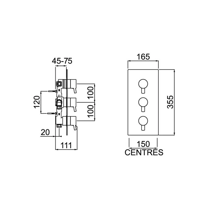 Prism Recessed Thermostatic Dual Control Shower Valve with Integral Two Outlet Diverter and Stopcock Chrome