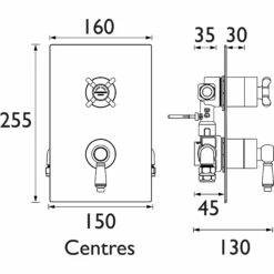 Fitting depth including plasterboard and tiles is 45mm – 75mm