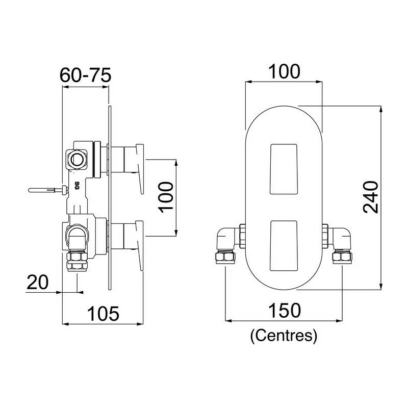 Sail Recessed Thermostatic Dual Control Shower Valve with Integral Two Outlet Diverter Chrome