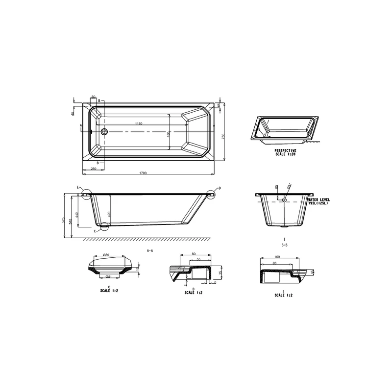 Arundel 1700 x 750mm Cleargreen Bath with Legset