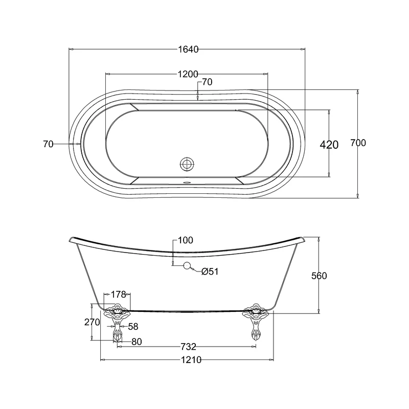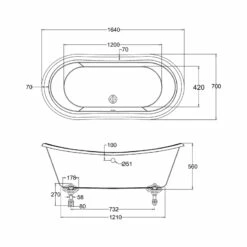 Displaced Capacity 99 litres (bath’s capacity less 70 litres