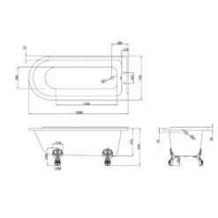 Burlington Avantgarde Back-To-Wall 1700mm Bath With Black Feet