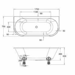 Burlington Avantgarde Back-To-Wall 1700mm Bath With Chrome Feet