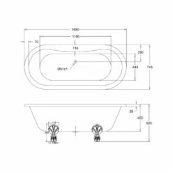 Burlington Avantgarde Back-To-Wall 1700mm Bath With Chrome Feet