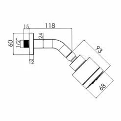Quadrado 68mm Multi-Function Head with 118mm Wall Arm