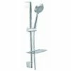 Consists of Flat Soft single function ABS handset with standard hose, Square wall outlet, and Slim Flat 900mm slider bar