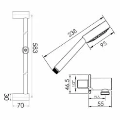 Consists of Tensor 95 single function ABS handset with non-tangle deluxe hose, Techno wall outlet, and Techno 600mm slider bar