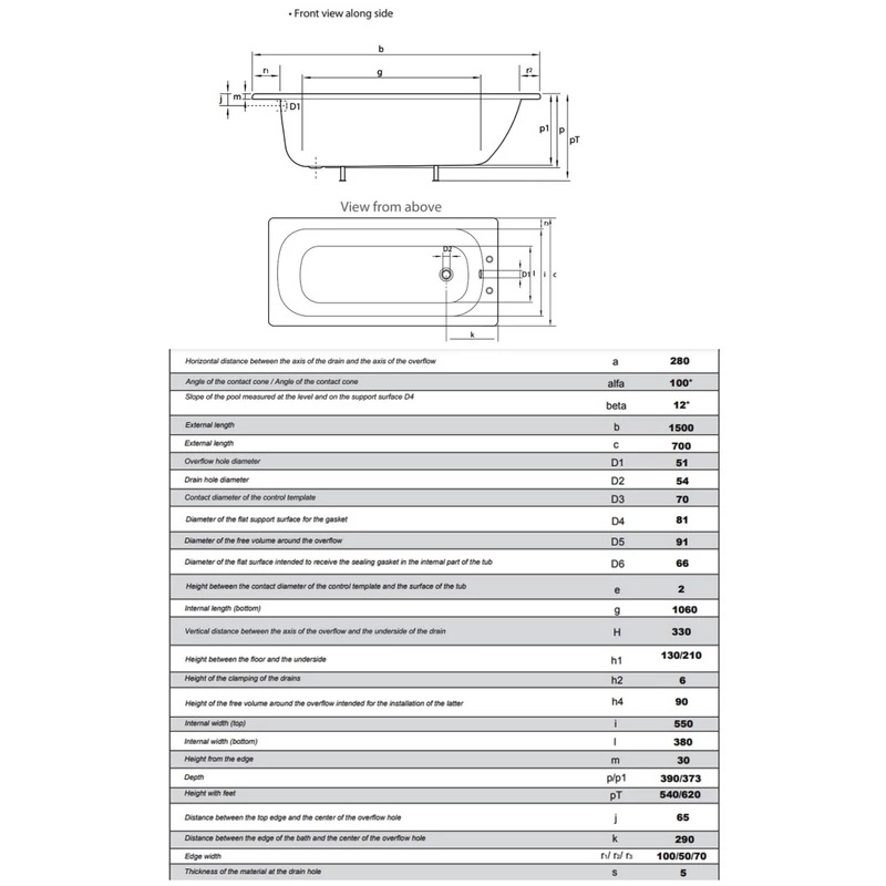 Essential Steel 1500mm x 700mm Single Ended Steel Anti-Slip Bath