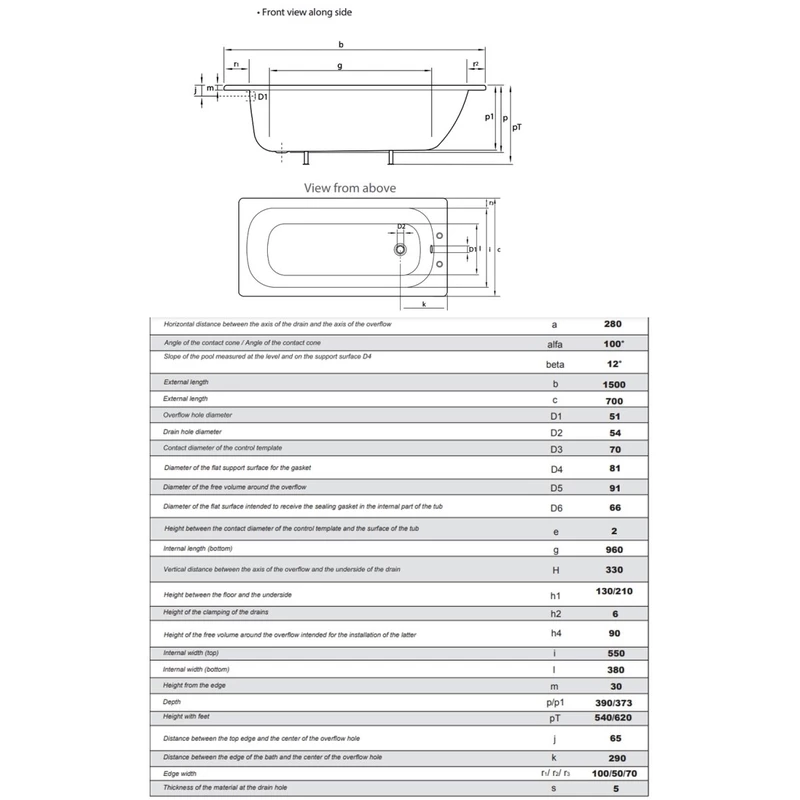 Essential Steel 1500mm x 700mm Single Ended Steel Bath