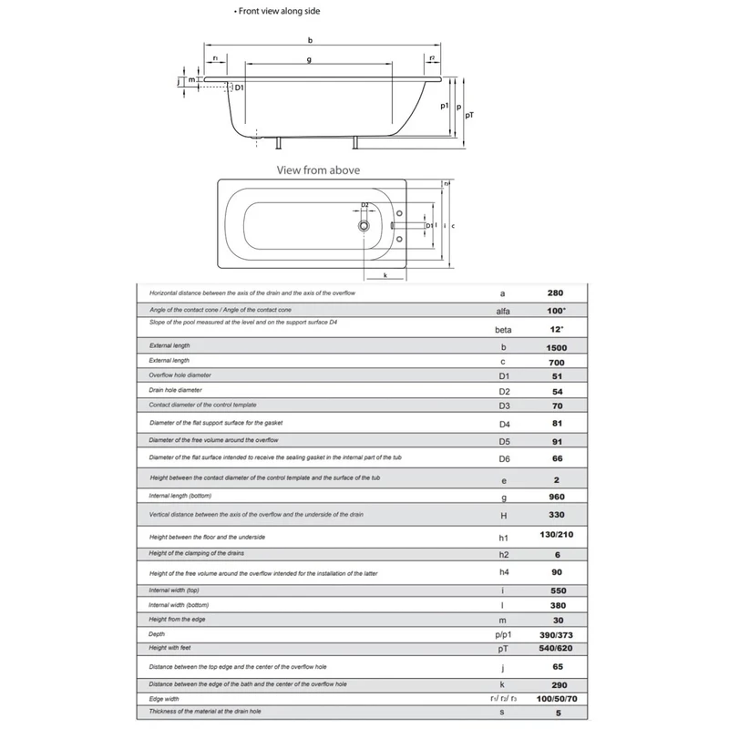 Essential Steel 1500mm x 700mm Single Ended Steel Bath