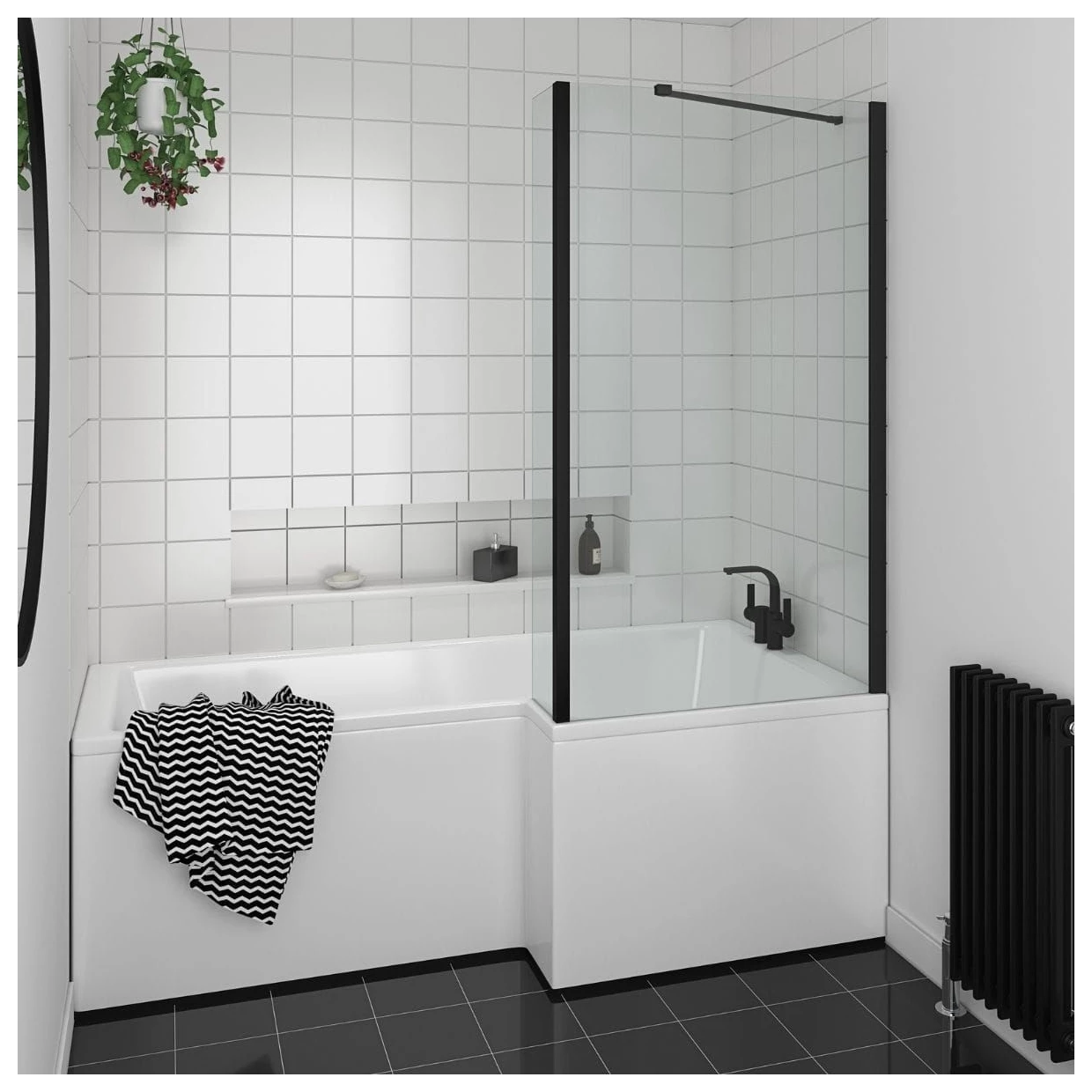 Essential Designer 1400mm x 850mm x 6mm L-Shaped Fixed Bath Screen