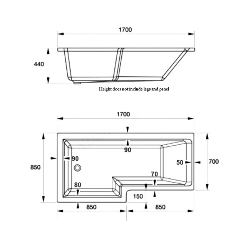 Essential Kensington 1700 x 850mm L Shape Shower Bath Pack