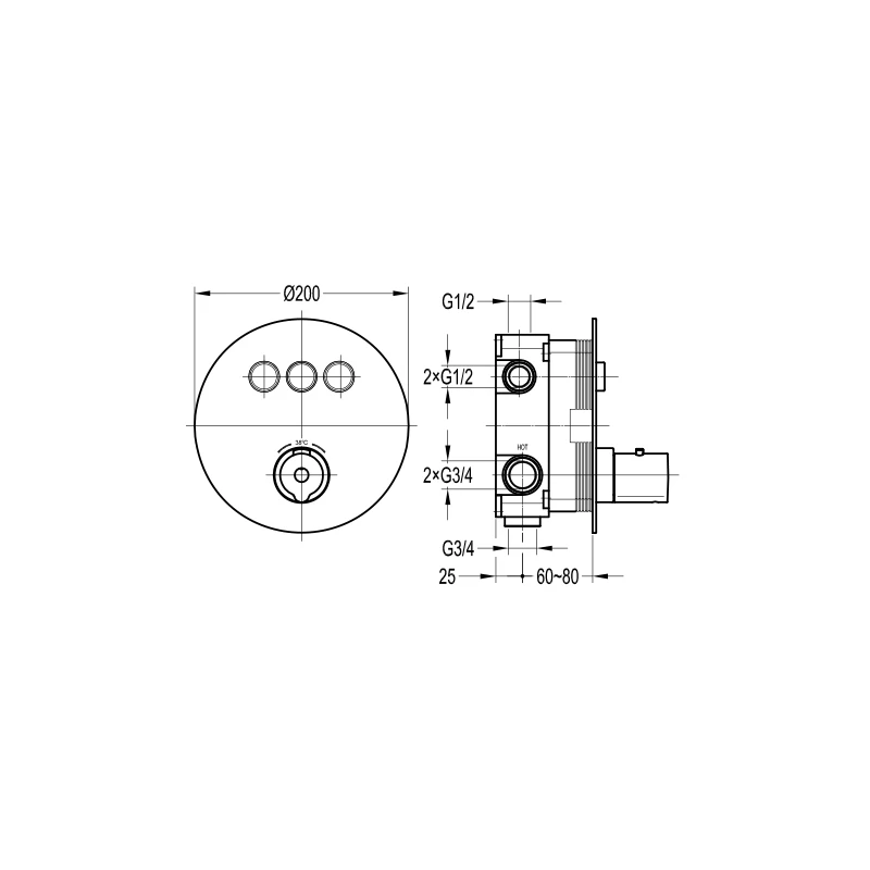 Requires concealed thermostatic GoClick 3-outlet shower valve GOBOX333 to complete installation