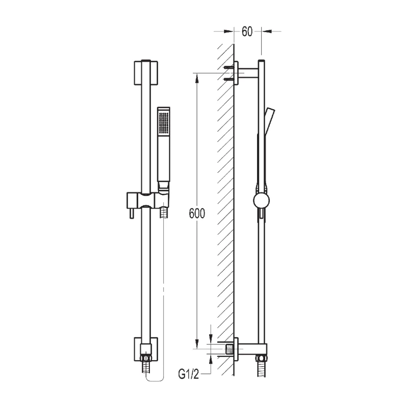 Str8 slide rail set with wall outlet, KI035 handset and KI200D hose