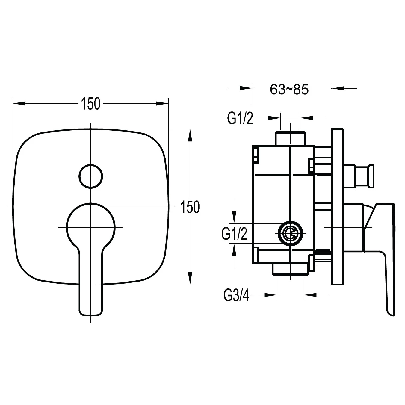 Urban concealed 2-outlet manual mixer