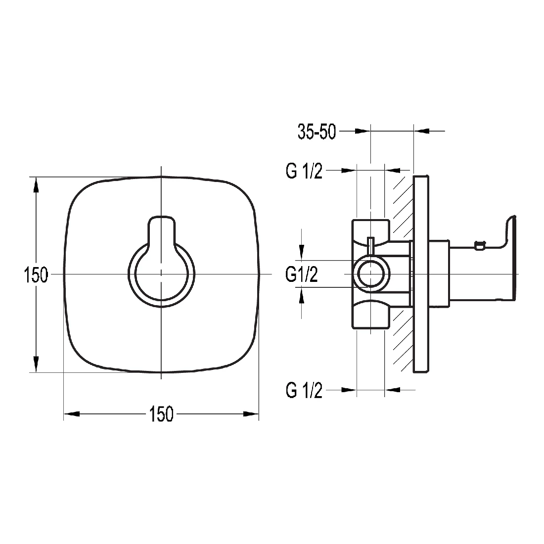 Urban concealed thermostatic shower mixer with dual outlet 1/2 inch connections HP