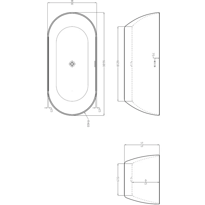 Graphite Summit 1680 x 800mm twin-skinned luxury freestanding double-ended bath with black outer