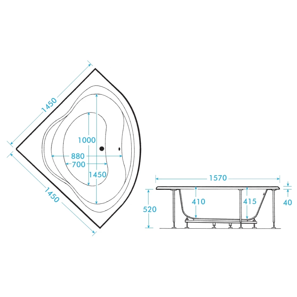 Lagoon 1450 x 1450mm corner bath