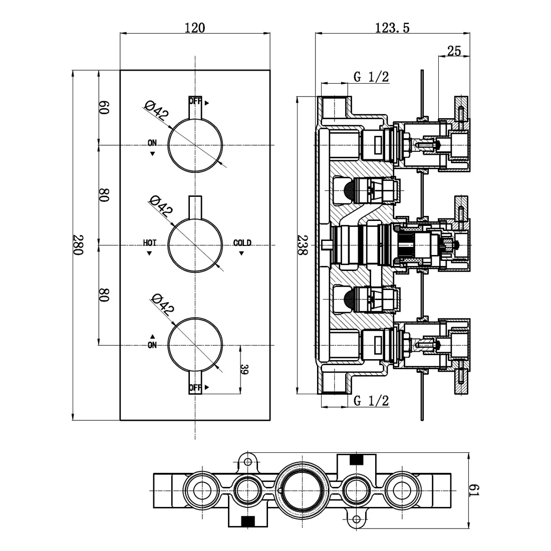 Premier® Premier Victorian Triple Thermostatic Shower Valve