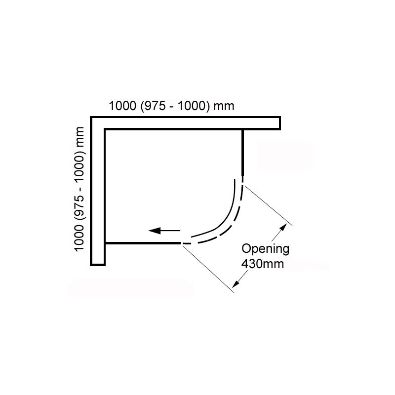 Aquaglass Frameless 1000mm 1 door quadrant shower enclosure