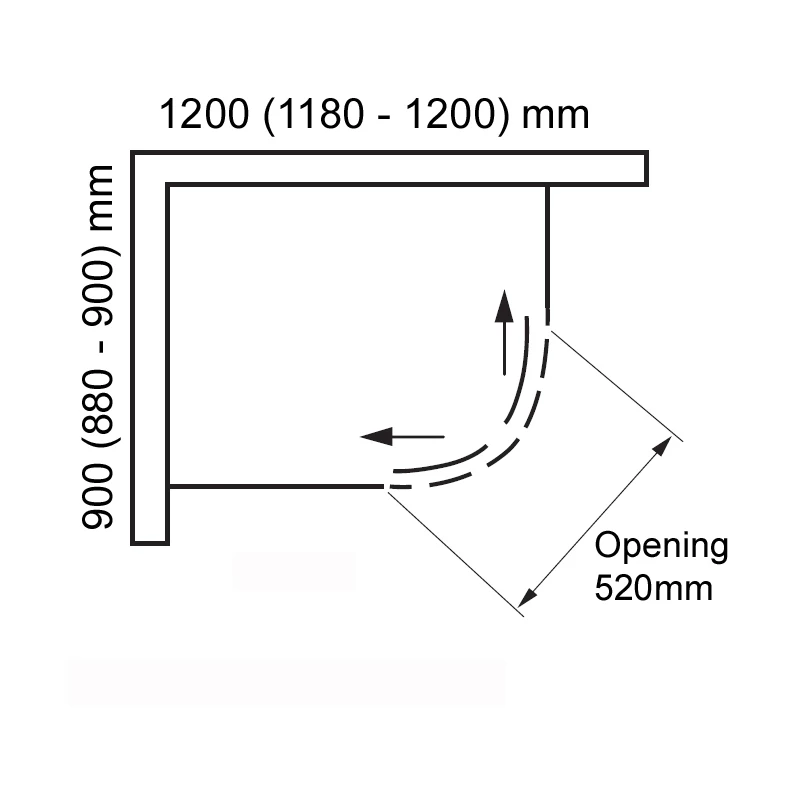 * ST2512X90QR 1200 x 900mm slimline offset quadrant shower tray