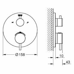 The Grohe Atrio thermostatic bath mixer trim set provides the perfect final element for your bathtub, designed to allow you to switch effortlessly between shower and bath outlet. Atrio is an iconic design, precisely engineered with a beautiful simplicity. Control flow easily with Grohe AquaDimmer?s simple action that lets you effortlessly direct the water where you want while simultaneously setting the volume. The tactile, round design invites you to interact with the intuitive controls via solid metal handles, and the slim profile (10mm wall plate, 43mm total projection) is ideal for minimalist schemes. This thermostat is made in Germany and packed with innovative technology. Grohe TurboStat technology prevents any unpleasant temperature fluctuations. It?s family-friendly too as the Grohe SafeStop override button is set at 38°C so scalding is a thing of the past. And the Grohe SafeStop Plus optional temperature limiter lets you add a further limit of 43° C for an extra level of safety. The hardwearing, lustrous Grohe StarLight chrome finish will look pristine for years to come. And the Grohe QuickFix metal escutcheon with a locking system and covered sealing makes the installation swift and easy. Please note that this product must be installed in combination with the Grohe Rapido SmartBox (35600000).