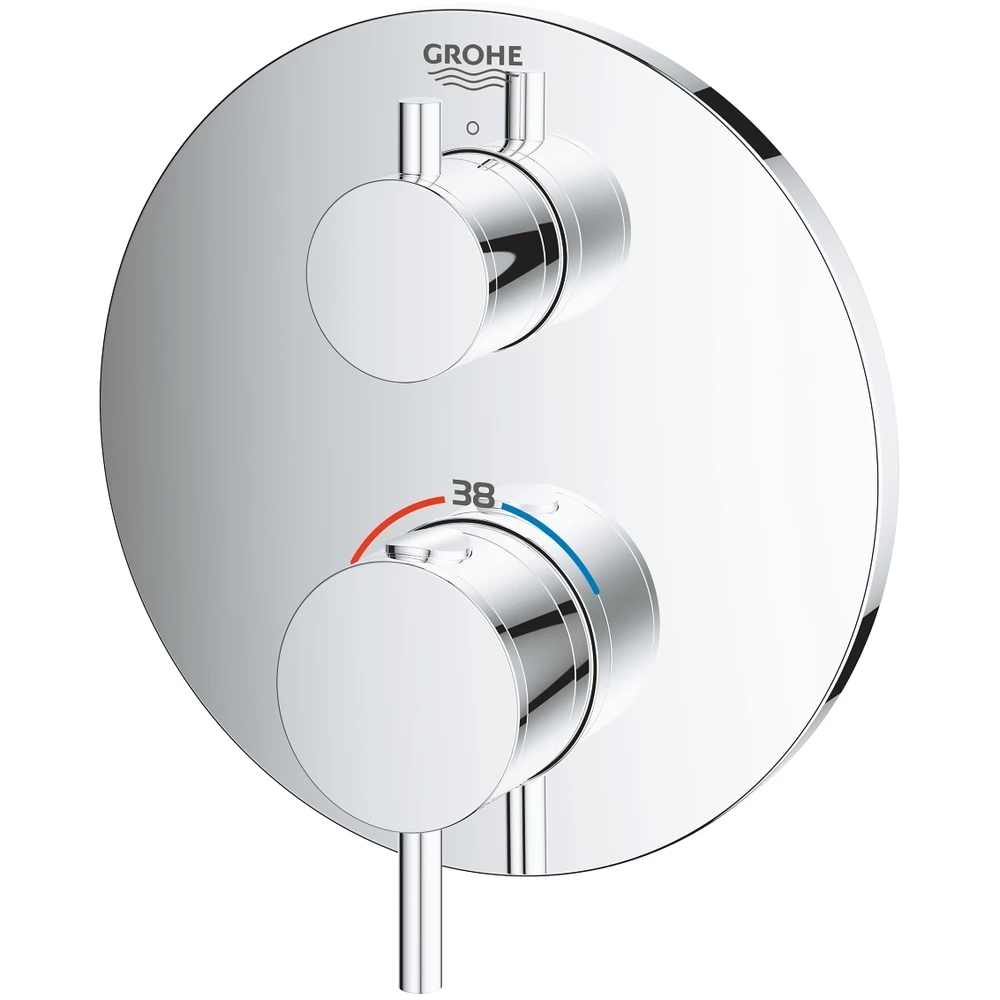 Made in Germany, the Atrio thermostatic shower mixer trim set provides the perfect final element for your shower. Atrio is an iconic design, precisely engineered with a beautiful simplicity. It features intuitive controls via solid metal handles, and the round shape and slim profile (10mm wall plate, 43mm total projection) is ideal for minimalist schemes. The hardwearing, lustrous Grohe StarLight chrome finish will look pristine for years to come. And the Grohe QuickFix metal escutcheon with a locking system and covered sealing makes the installation swift and easy. Please note that this product must be installed in combination with the Grohe Rapido SmartBox (35600000).