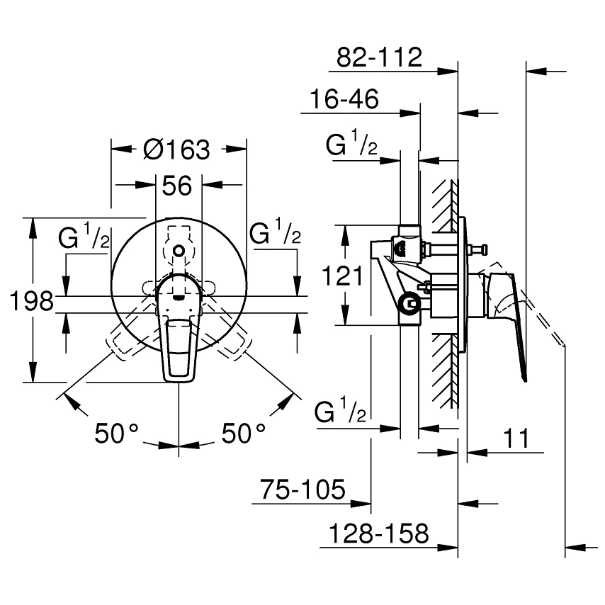Bauloop Single-Lever Bath/Shower Mixer, Chrome finish