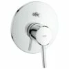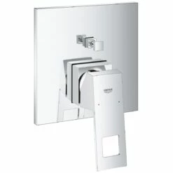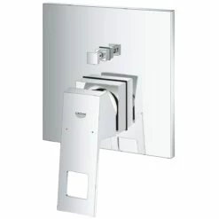The Grohe Eurocube single-lever mixer trim set features a modern, clean-lined distinctive look suitable for any bathroom. The tactile design invites you to interact, with a metal escutcheon and lever offering a feeling of solidity, and the slim profile – the wall plate has a 158mm diameter and a depth of only 10mm – will appeal to design purists. The sleek 2-way diverter projects only 43mm and allows you to switch effortlessly between head and hand shower, or shower and bath spout. Thanks to the Grohe SilkMove ceramic cartridge, water temperature and volume are easy to control with a lever that moves super smoothly. The hardwearing, lustrous Grohe StarLight chrome finish will look pristine for years to come. This product must be installed in combination with the Grohe rapido smartbox (35600000).