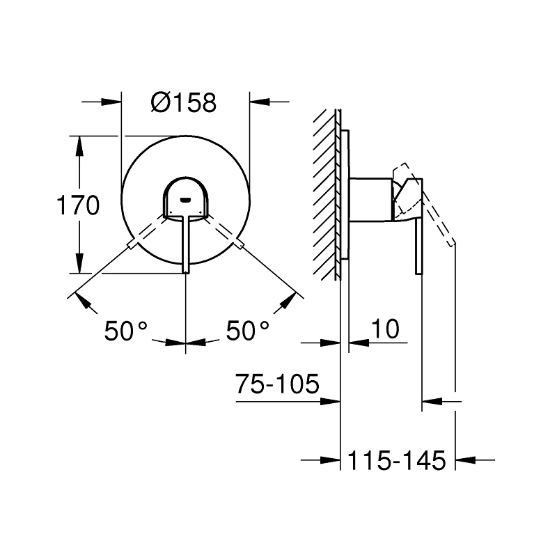 The Grohe Plus concealed single lever shower mixer combines elegant form with efficient function. Made in Germany, the tactile design invites you to touch, with a metal escutcheon and lever offering a feeling of solidity. The wall plate?s 158mm diameter and depth of just 10mm gives a slim, streamlined feel. It has a Grohe SilkMove ceramic cartridge, offering smooth, precise control for the life of the set. Finished in the long-lasting Grohe StarLight chrome this set combines durability with dazzling good looks. And the Grohe QuickFix escutcheon with a locking system and covered sealing makes installing the set easy. This trim set is designed to be installed with the Grohe Rapido SmartBox universal rough-in box (35600000), sold separately