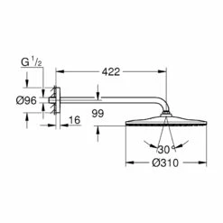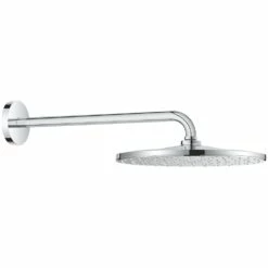 Step under a large, round shower head that gives great coverage, into the enveloping, gentle feel of Grohe’s PureRain spray. The 310mm shower head is designed to be wall-mounted on a 422mm arm. This shower lets you enjoy an even flow from every nozzle thanks to Grohe DreamSpray technology. Grohe EcoJoy limits water flow to 9.5 litre/minute for a comfortable water-saving shower experience. And the SpeedClean nozzle designs means you can brush them free of limescale with just a wipe of your finger. Hot water is directed away from the surface of the shower head via the Inner WaterGuide, extending the life of the sparkling but durable Grohe StarLight chrome finish that will keep its good looks for years to come.