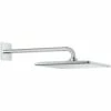 Step under a large, round shower head that gives great coverage, into the enveloping, gentle feel of Grohe’s PureRain spray. The 310mm shower head is designed to be ceiling-mounted on a 142mm arm. This shower lets you enjoy an even flow from every nozzle thanks to Grohe DreamSpray technology. Grohe EcoJoy limits water flow to 9.5 litre/minute for a comfortable water-saving shower experience. And the SpeedClean nozzle designs means you can brush them free of limescale with just a wipe of your finger. Hot water is directed away from the surface of the shower head via the Inner WaterGuide, extending the life of the sparkling but durable Grohe StarLight chrome finish that will keep its good looks for years to come.