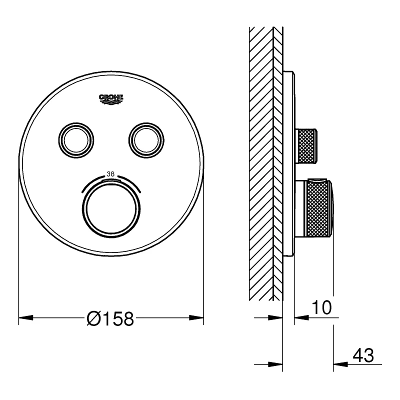 Grohtherm SmartControl concealed thermostat with innovative SmartControl technology to select your desired spray source and adjust the water volume at the push-turn of a button. The two valves mean you can switch effortlessly between – or combine – head and hand shower, or between shower and bath. Integrated Grohe TurboStat technology prevents any unpleasant temperature fluctuations. Grohe EasyLogic markings and textured buttons with exchangeable symbols make it easy and intuitive to use. Family-friendly, the Grohe SafeStop override button allows you to set a maximum temperature of 38° C to prevent scalding – the Grohe SafeStop Plus optional temperature limiter lets you add a further limit of 43° C for an extra level of safety. Water-saving Grohe EcoJoy technology gives you the option of a reduced flow rate with no compromise on enjoyment. Thanks to the Grohe QuickFix system it’s swift and straightforward to install. The slim profile makes it easy to keep clean, and the durable Grohe StarLight finish will look pristine for years to come. With a slim, round design perfect for that minimalist, streamlined look, this product is bound to enhance your bathroom scheme. Please note that this product must be installed in combination with the Grohe Rapido SmartBox (35600000).