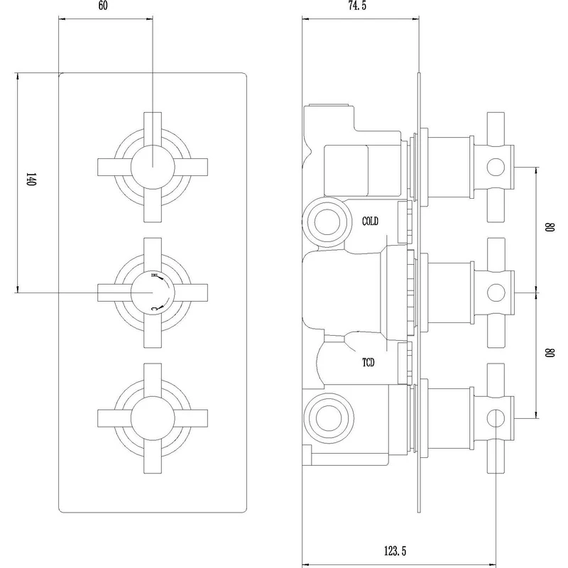 Tec Crosshead Triple Thermostatic Shower Valve with Diverter