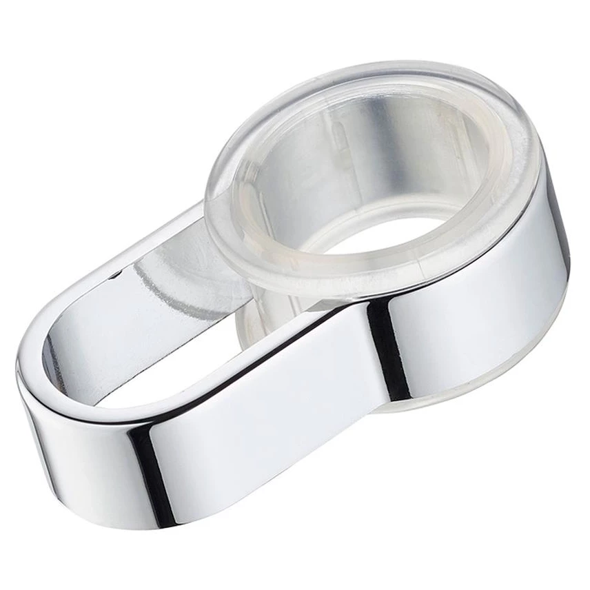 Category 5 hose retainer for shower kits which fits onto slide rail to limit handspray movement, to prevent back siphonage in Category 5 installations